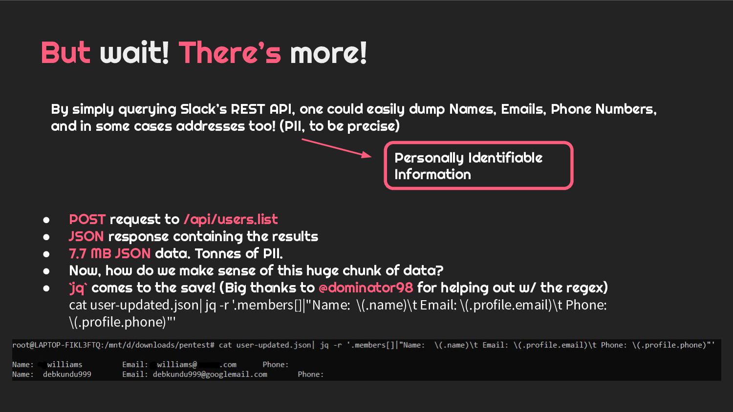 - Case 2: Leveraging misconfigurations in Slack for PII and more!