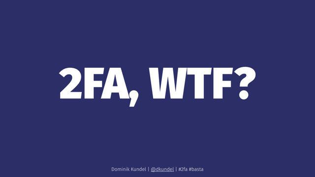 Enters username and password 3. System verifies details 4. User opens auth app 5. Enters app verification code on site 6. System verifies code 7. User is logged in Dominik Kundel | @dkundel | #2fa #basta