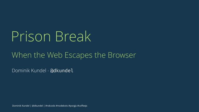 untethered # Use johnny-five to easyly swap microcontrollers $ It has to be internet connected % Quick setup / easy development & We need to build a server. npm packages help Dominik Kundel | @dkundel | #ndcoslo #nodebots #porgjs #coffeejs