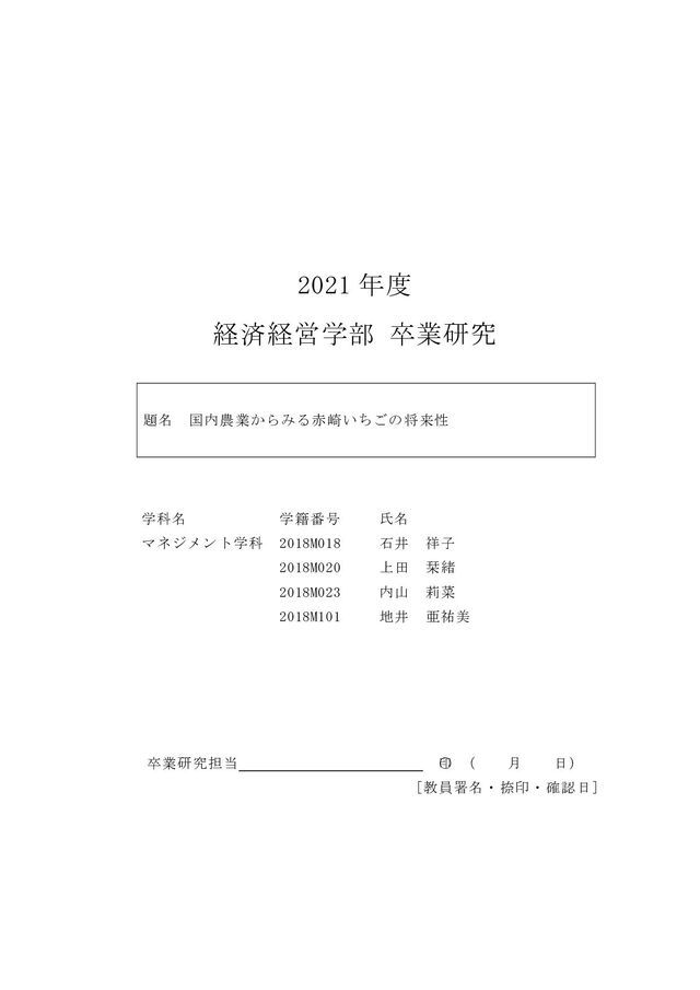 取り組みができなかったことが反省点として挙げられた。例えば、イベント来場者にいち ご園の入園料、関連商品の割引券を配布し検証、入園料の割引券については平日限定にす ることで、 安定した入園者を図ることができればよかったとの声が上がった。 そのほかに、 2012 年 11 月 27 日(火)~12 月 10 日(日)の 2 週間、サークル K サンクスとのコラボ で「能登町産」という文字を入れたパッケージで、赤崎いちごシャルロットの販売も行っ ていた。 次に、ふるさと振興課からみた赤崎いちご農家の課題について述べていく。課題は、農 家の高齢化、後継者不足による農家数、農園面積の減少であった。それに加え、図 3.5 よ り、赤崎いちご園の入込客数も五感まるごと能登づくしのイベント終了後の 2014 年を境 に年々減少した。2020 年には 1,000 人にまで落ち込んでいる。また、赤崎いちご園は複数 の農園から形成されているが、いちごの摘み取り予約や受け入れは個別で実施しているた め、いちご園全体の状況を把握することができないことが問題点である。ネット予約など もなく、来園者が直接各農家へ確認をとる必要があるのが現状だ。就農については、能登 町では、就農を希望する人と農家のマッチングへの取り組みはなかった。しかし、石川県 0 5,000 10,000 15,000 20,000 25,000 30,000 0 500 1,000 1,500 2,000 2,500 3,000 2010 2011 2012 2013 2014 2015 2016 2017 2018 2019 2020 い ち ご 園 ! 人 # 五 感 ま る ご と 能 登 づ く し ! 人 # 五感まるごと能登づくし いちご園