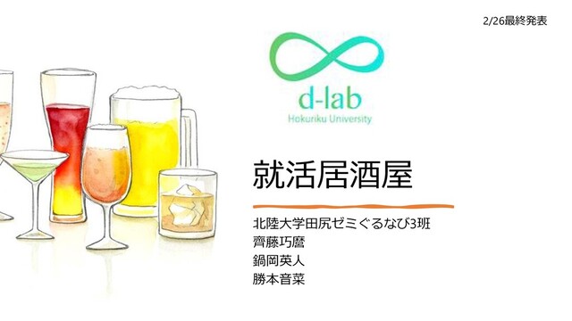 就活居酒屋 北陸大学田尻ゼミぐるなび3班 齊藤巧麿 鍋岡英人 勝本音菜 2/26最終発表