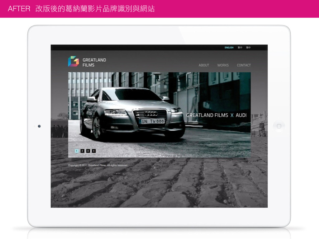 Branding & Identity Design 視覺傳達設計 Visual Communication 網站設計 Web Site Development 網站管理平台建置 Content Management System 解決⽅方案 葛納蘭影⽚片原始的品牌識別與網站具有⽐比較 強的東⽅方意象,在成⽴立15週年之後,葛納蘭 影⽚片委託原研數位品牌顧問導⼊入全新的企業 識別,我們在深⼊入分析後決定以強調⾃自由、 開放、流動、連結的品牌特質,為這個來⾃自 台灣的創意團隊打造更具有時代性並融⼊入全 球視野的品牌形象。