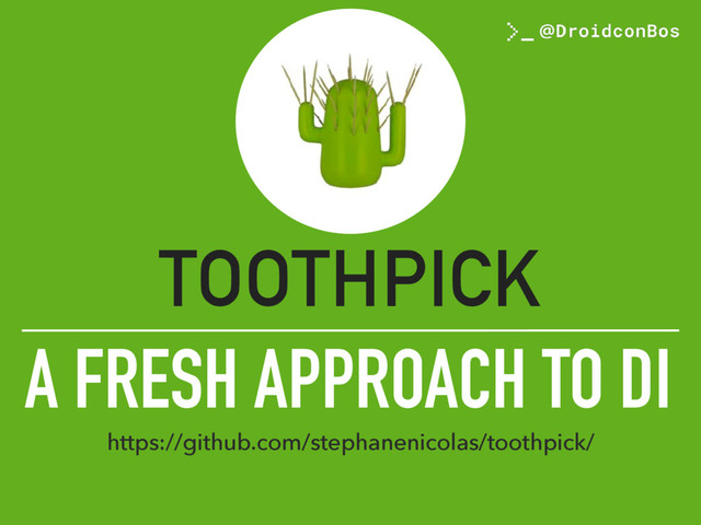 A FRESH APPROACH TO DI TOOTHPICK https://github.com/stephanenicolas/toothpick/ +stephane nicolas @D_Lemures