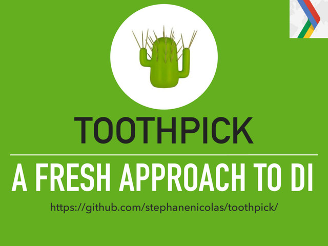 A FRESH APPROACH TO DI TOOTHPICK https://github.com/stephanenicolas/toothpick/ @D_Lemures #ToothpickDI @GrouponEng