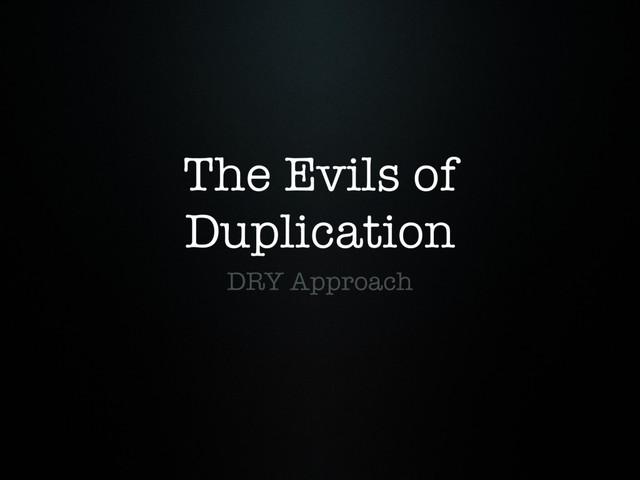 The Evils of Duplication DRY Approach