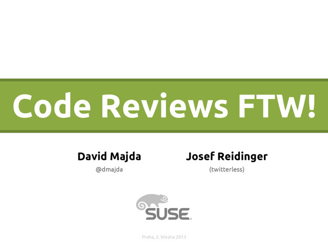 V SUSE jsme v některých týmech cca před rokem začali používat code reviews. Jaké jsou naše zkušenosti a jaké vidíme výhody? Jak vlastně vypadá správné code review? Na co by se měl reviewer zaměřit a čemu se naopak vyhnout? A mají code reviews smysl i pro vás? Na tyto otázky zkusíme dát odpověď.