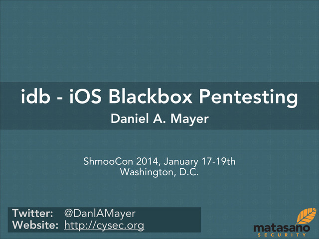 During our presentation, we will explore a number of vulnerability classes. Each class will first be introduced and discussed before demonstrating how idb can enhance the testing for instances of it. With this we illustrate how apps commonly fail at safeguarding sensitive data and demonstrate how idb can arm security professionals and developers with the means necessary to uncover these flaws from a black-box perspective. Furthermore, we will provide illustration of how to mitigate each flaw. At the conclusion of this ShmooCon talk, idb will be made open source and released to the public.