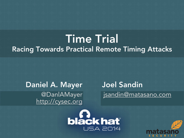 Talk at Blackhat USA 2014 by Daniel A. Mayer and Joel Sandin.