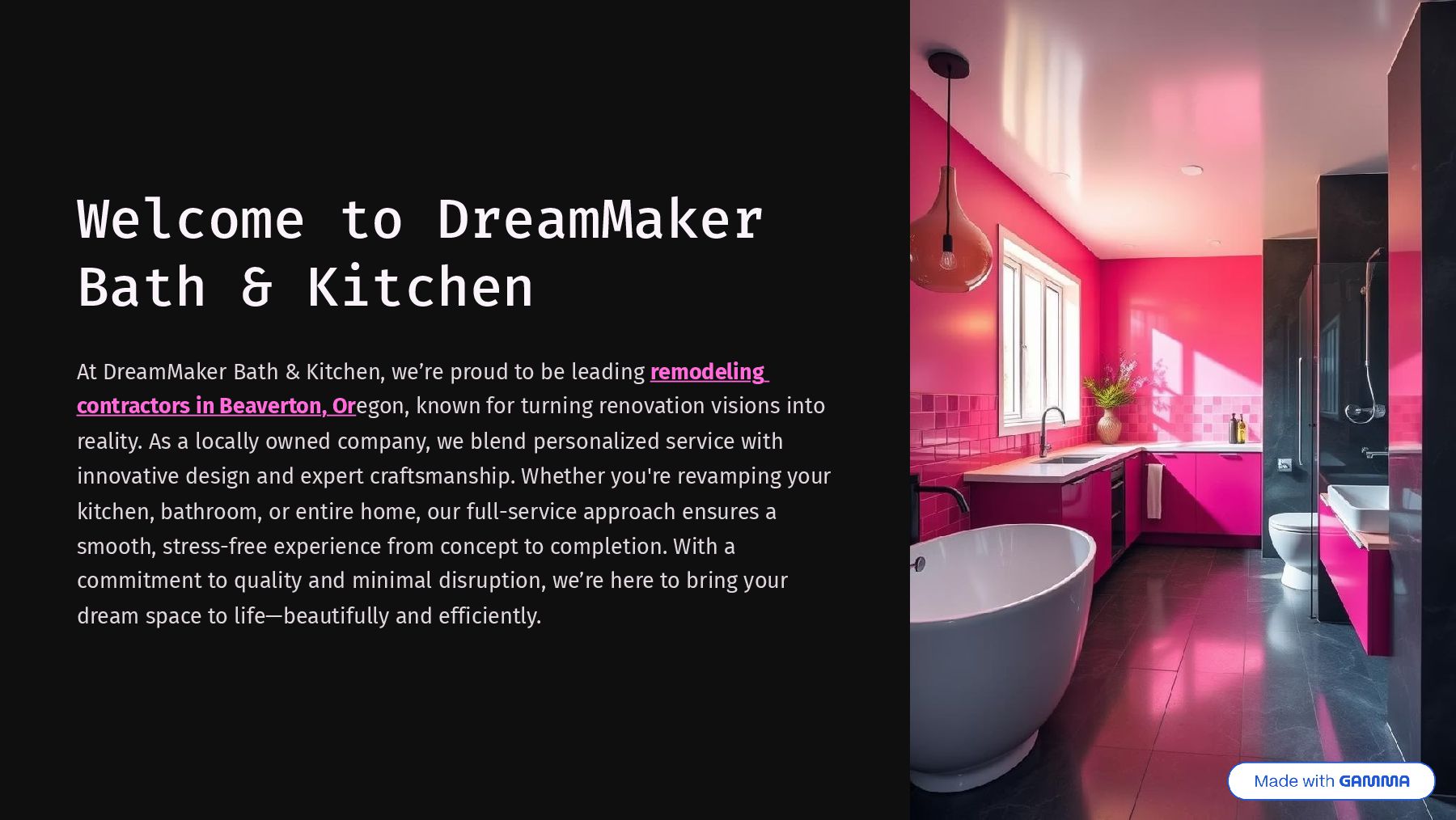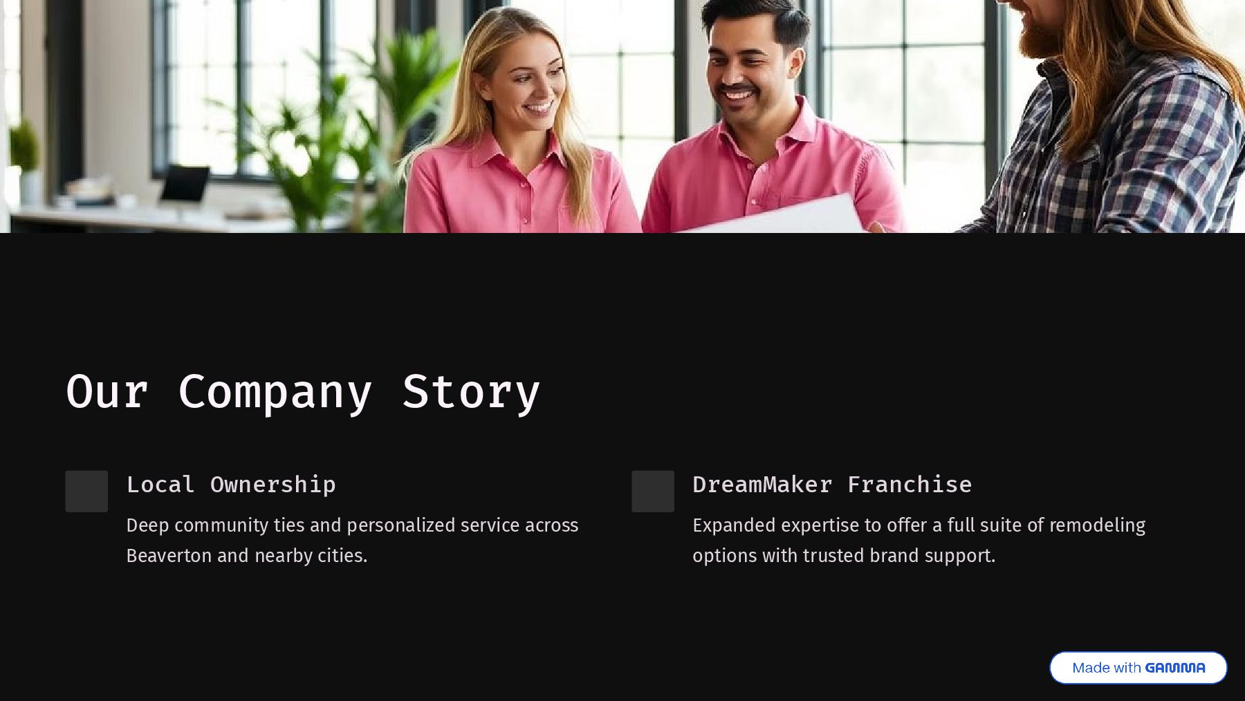 service across Beaverton and nearby cities. DreamMaker Franchise Expanded expertise to offer a full suite of remodeling options with trusted brand support.