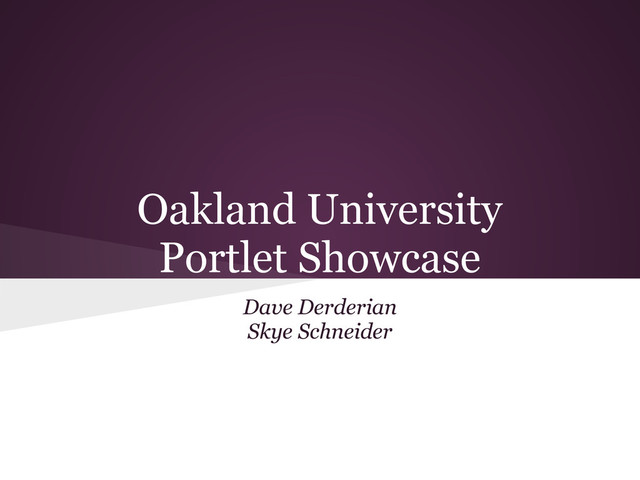• Oakland's Banner DAO ◦ Direct access to Banner information • Modified API ◦ Extra information for courses ◦ Tie into Calendar Portlet • Custom Desktop View