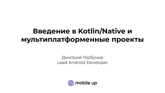Введение в Kotlin/Native и мультиплатформенные проекты Дмитрий Горбунов Lead Android