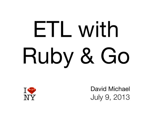 chan string ! var extracted chan Document ! var transformed chan string ! // returns a channel, ! // GetQueries will close the channel when its finished ! queries = GetQueries() ! db := GetConnection() ! ! wg.Add(3) ! startExtractors(db, queries, extracted, &wg) ! startTransformers(extracted, &wg) ! startLoaders(transformed, &wg) ! // Use the WaitGroup to block until all ! // workers have finished with all channels ! wg.Wait() }