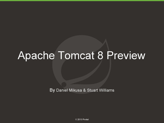 This presentation will provide an overview of the changes and new features introduced by both the updated specifications and the Tomcat specific changes. This session will enable attendees to identify the Tomcat 8 features of greatest interest to them and provide them with the information required to start planning their migration to Tomcat 8.