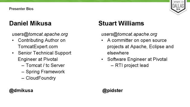 The authors demonstrate Apache Tomcat's stability under high load, describe some do's (and some don'ts!), explain how to performance test a Servlet-based application, troubleshoot and tune the container and your application and compare the performance characteristics of the different Tomcat connectors.