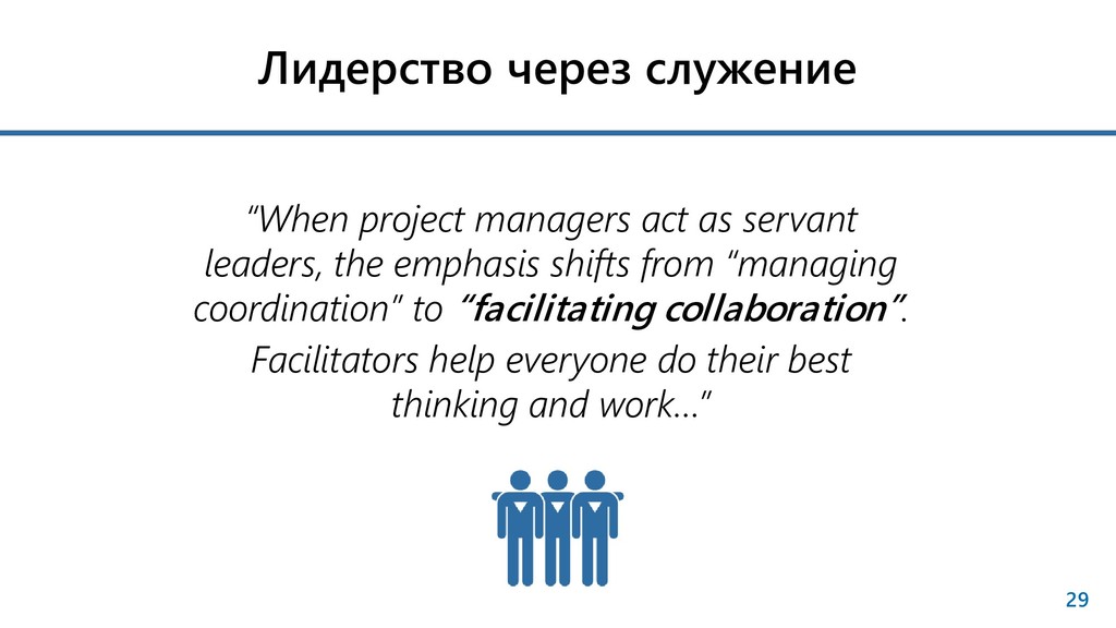 leaders, the emphasis shifts from “managing coordination” to “facilitating collaboration”. Facilitators help everyone do their best thinking and work…”