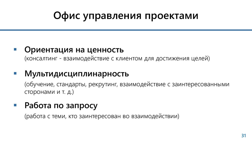 взаимодействие с клиентом для достижения целей) Мультидисциплинарность (обучение, стандарты, рекрутинг, взаимодействие с заинтересованными сторонами и т. д.) Работа по запросу (работа с теми, кто заинтересован во взаимодействии)