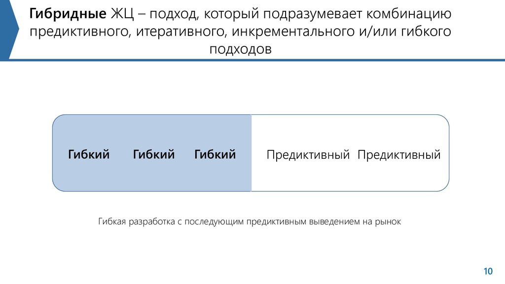 инкрементального и/или гибкого подходов Гибкая разработка с последующим предиктивным выведением на рынок Предиктивный Гибкий Гибкий Гибкий Предиктивный