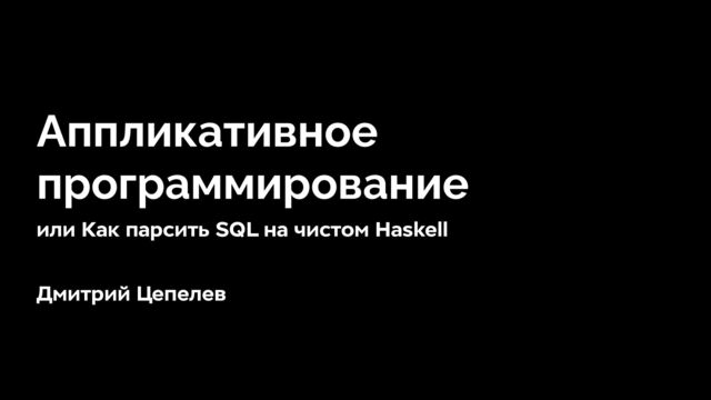 Первая часть доклада — про основы синтаксиса Haskell. Во второй части — поговорим про функторы, из которых мы будем собирать нашу программу. В финале — мы сделаем парсер общего назначения в аппликативном стиле и научим его разбирать небольшое подмножество языка SQL.