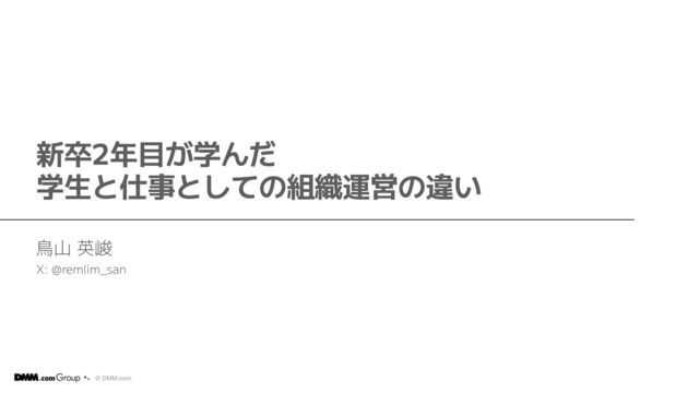 鳥山 英峻 X: @remlim_san 新卒2年目が学ん だ 学生と仕事としての組織運営の違い