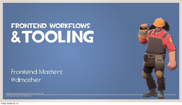The rise of JavaScript application frameworks has led to much confusion around how developers should structure their rich-client application codebases and what tools they should use. Come join David Mosher, Front-End Engineer at Shopify, to learn how to use front-end workflow tools like Grunt and Chrome Developer Tools to create a high-quality workflow pipeline that will promote your rich-client JavaScript applications to first-class citizens.