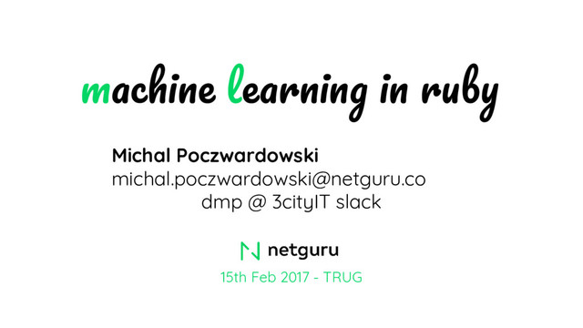 gems / not so many resources • ML and AI experts mosty use Java and Python, Ruby hasn't got much love - most of them come from Universities and more scientific studies - Ruby is just not used in such environments