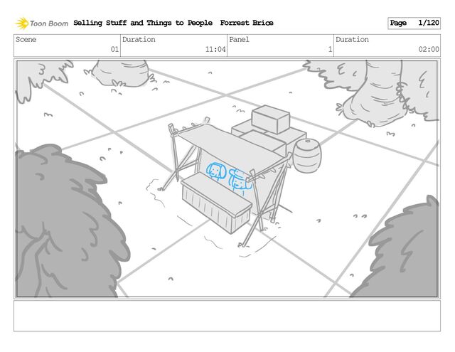 Scene 12 Duration 05:00 Panel 1 Duration 01:00 Selling Stuff