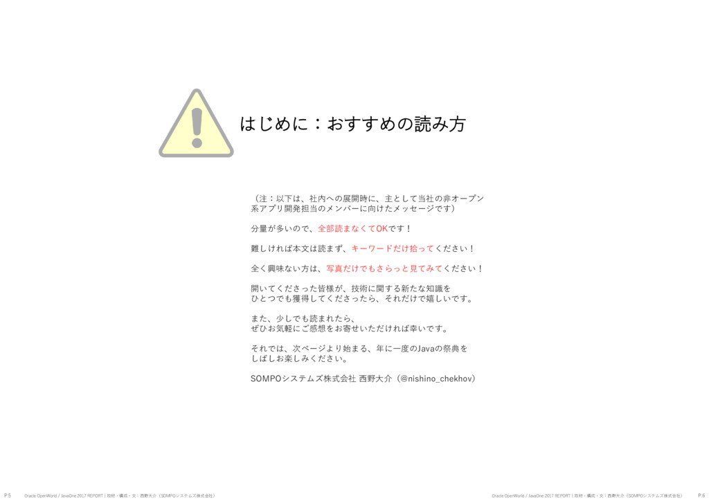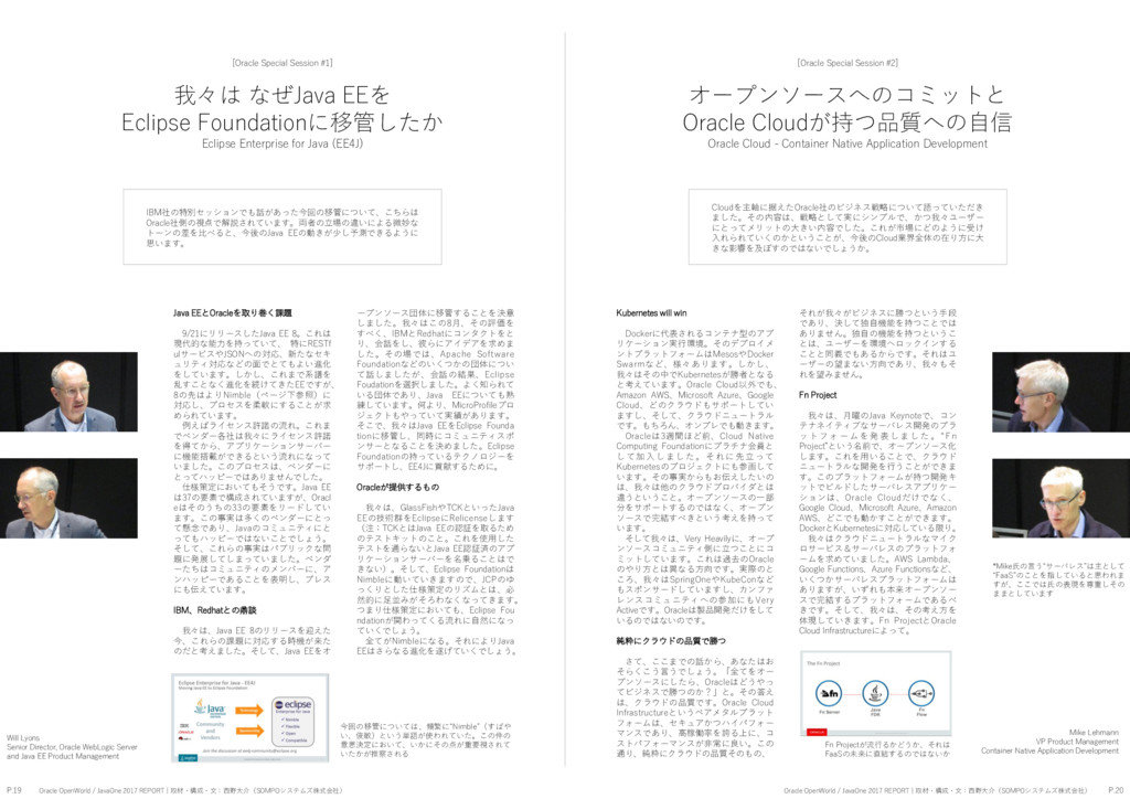 Oracle OpenWorld / JavaOne 2017 REPORT | 取材・構成・文:西野大介(SOMPOシステムズ株式会社) S P E CI AL S E S S I O N at Oracle CVC JavaOne講演の隙間を狙い、Oracleの未来を握る重鎮の方々から直接 お話をうかがいました。オープンソースにコミットする意気込みや、 Oracleから見たEE4Jへの思いなど、顔を突き合わせたからこそ見える その真意を、この記録から読みとってください。 * * CVC : Customer Visit Center