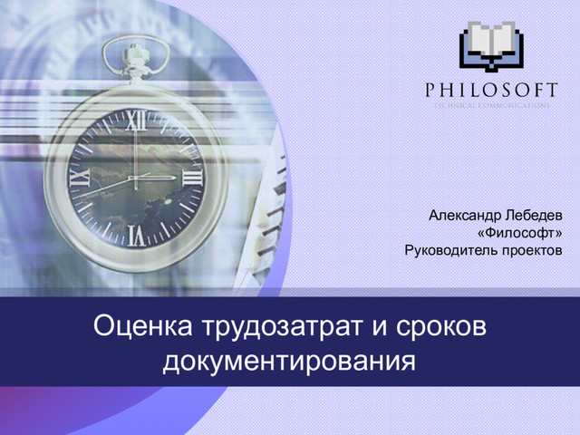 Оценка трудозатрат и сроков документирования. Александр Лебедев, Философт (Москва), руководитель проектов