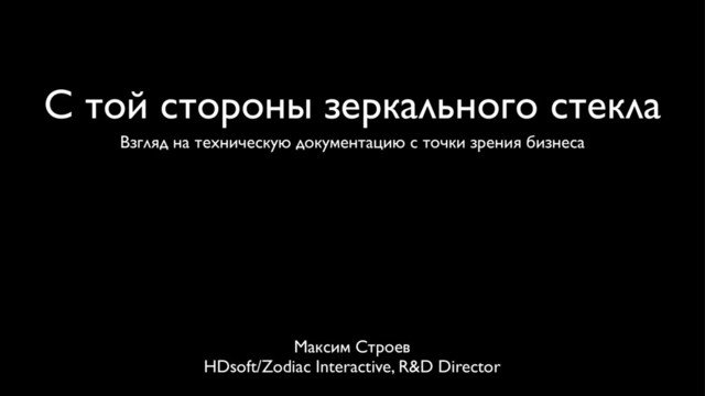 С той стороны зеркального стекла: взгляд на документацию с точки зрения бизнеса. Максим Строев, HDsoft/Zodiac Interactive, R&D Director