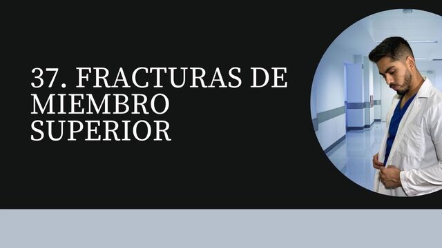 MIEMBRO SUPERIOR, GOLPE DIRECTO MAS FFC TERCIO MEDIO Y SIMPLE RX AP QUE INCLUYA ARTICULACION ESTERNOCLAVICULAR Y PORCION LAT HUMERO ELECCION: CABESTRILLO/INMOVILIZADOR HOMBRO ESCAPULA TRAUMA DE ALTA ENERGIA ASOC A LESION PLEXO BRAQUIAL, NERVIO SUPRAESCAPULAR Y FX COSTALES RX PERFIL ESCAPILAR QX: SI INESTABLE, ANGULADA O DESPLAZADA HUMERO PROXIMAL CAIDA SOBRE MIEMBRO SUPERIOR, GOLPE DIRECTO PACIENTES DE EDAD AVANZADA CLASIF NEER NECROSIS ISQUEMICA RX AP DE HOMBRO, O PERFIL ESCAPULAR NO DESPLAZADA: CONSERVADOR DESPLAZADA: BUENA CALIDAD OSEA: OSTEOSINTESIS Y MALA CALIDAD: PROTESIS DIAFISIS DE HUMERO FX HOLSTEIN LEWIS: LESION N RADIAL RX AP Y LATERAL QUE INCLUYA HOMBRO Y CODO OBLICUA(NO SIEMPRE) QUIRURGICO CONSERVADOR: EXPUESTA, BILATERAL, LESION NERVIOSA PALETA HUMERAL TRAUMA DE ALTA ENERGIA MAS FC DE 4-8 AÑOS RX AP Y LATERAL REDUCCION ABIERTA CON OSTEOSINTESIS CON DOS PLACAS: ELECCION KOCHER-LORENZ HAHN STEINTHAL OSTEOCONDRAL: KOCHER TODO: HAHN RX AP Y LATERAL REDUCCION ABIERTA Y OSTEOSINTESIS CUANDO NO SEAPOSIBLE SE EXTIRPA EL FRAGMENTO