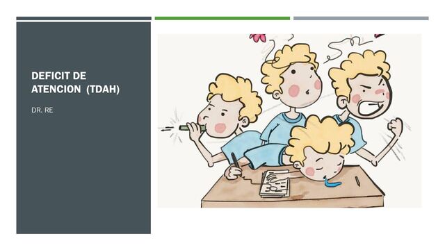 - HIPERACTIVIDAD - IMPULSIVIDAD PRESENTANDOSE EN DIFERENTES ESCENARIOS DE LA VIDA, PROVOCANDO DIFICULTADES EN EL FUNCIONAMIENTO: COGNITIVO, EDUCACIONAL Y LABORAL DOPAMINA (HIPERACTIVIDAD/IMPULSIVIDAD) NORADRENALINA (INATENCION/COGNITIVO) VIAS RECEPTORES DOPAMINA CATECOLAMINAS