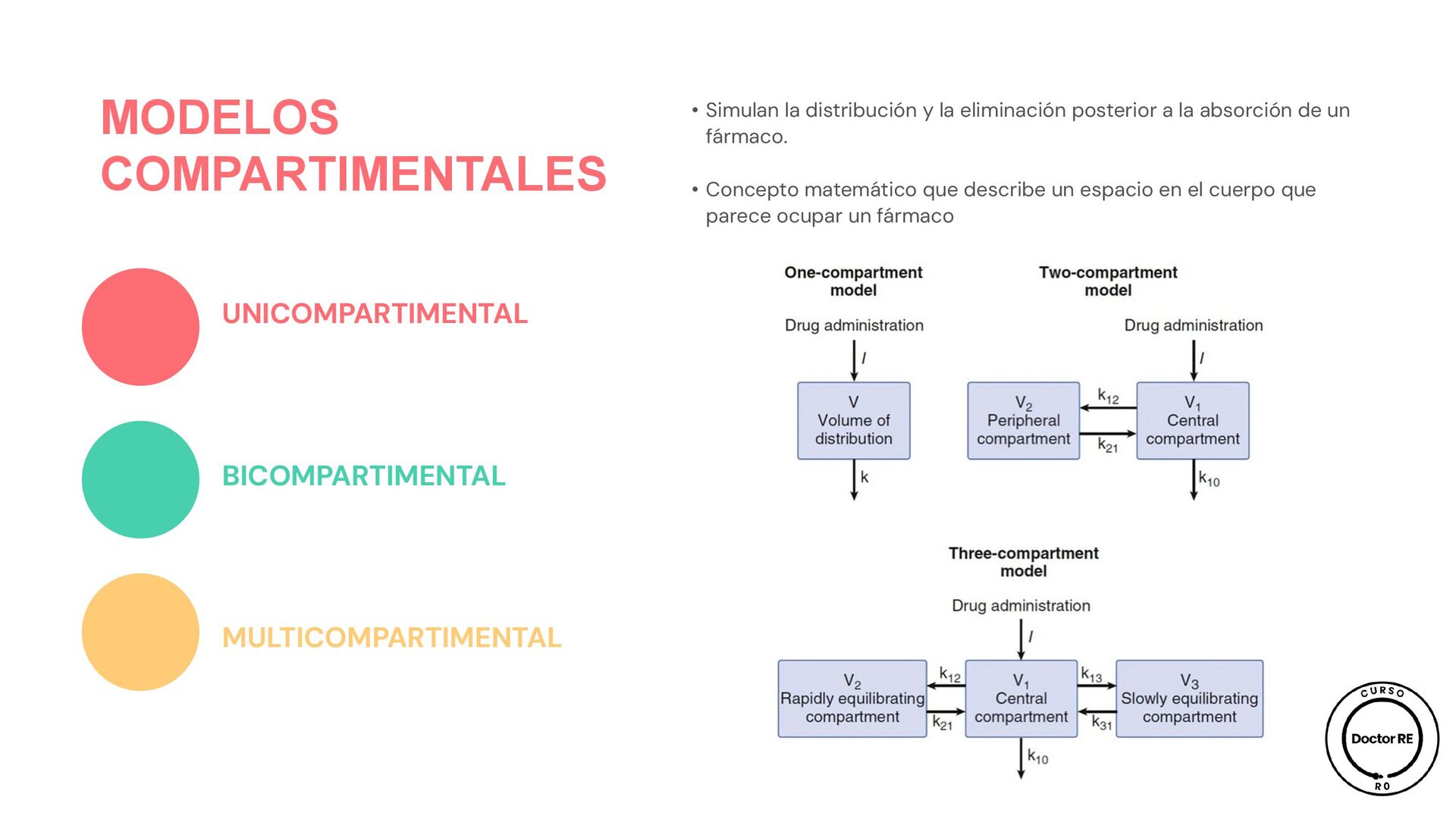 eliminación posterior a la absorción de un fármaco. • Concepto matemático que describe un espacio en el cuerpo que parece ocupar un fármaco BICOMPARTIMENTAL MULTICOMPARTIMENTAL