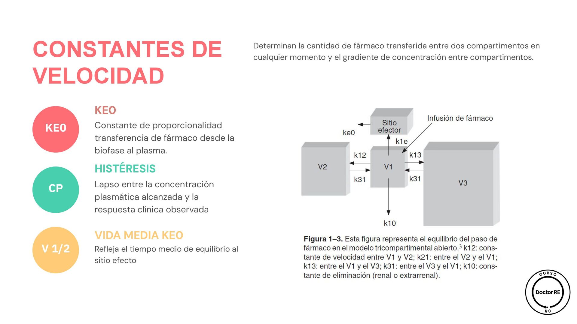 CP CONSTANTES DE VELOCIDAD Constante de proporcionalidad transferencia de fármaco desde la biofase al plasma. Lapso entre la concentración plasmática alcanzada y la respuesta clínica observada VIDA MEDIA KE0 V 1/2 Determinan la cantidad de fármaco transferida entre dos compartimentos en cualquier momento y el gradiente de concentración entre compartimentos. HISTÉRESIS KE0