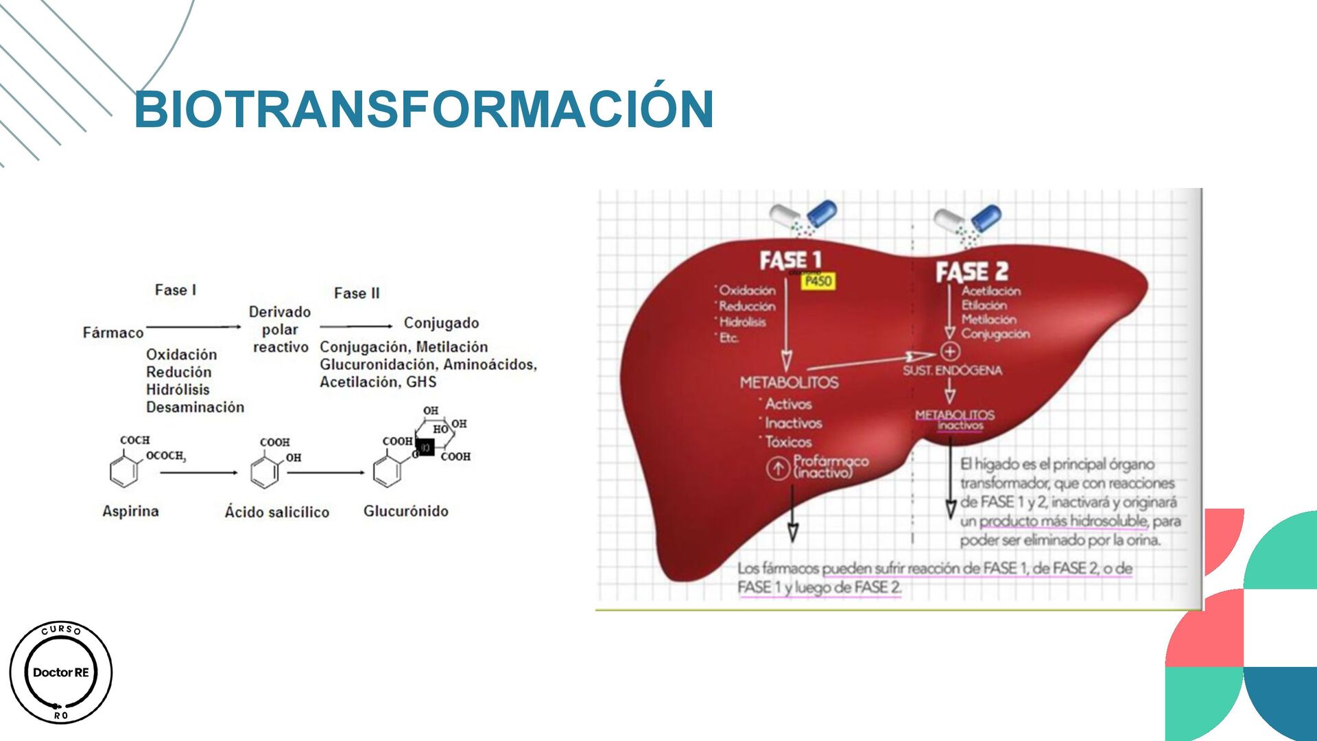 volumen Capacidad que tiene el organismo de limpiar, depurar o eliminar la cantidad de fármaco presente en un cierto volumen de plasma por unidad de tiempo Eliminación de la molécula original o mediante su transformación en metabolitos BIOTRANSFORMACIÓN ESTERÁSAS