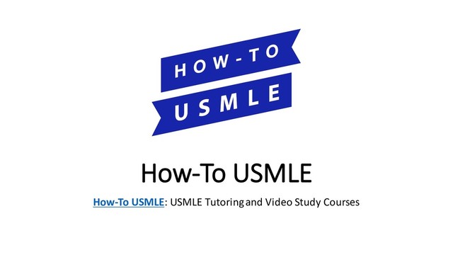 passing the U.S. Medical Licensing Examination. With our USMLE video study course, tutorials, USMLE practice questions, sample study schedules, discussion groups, and personalized USMLE tutoring, How-To USMLE has everything you need to ace the medical board exams! We help medical students get the residency, and the career, that they deserve. Visit HowToUSMLE.com today to ENROLL in our USMLE Study Course! How-To USMLE: USMLE Tutoring and Video Study Courses
