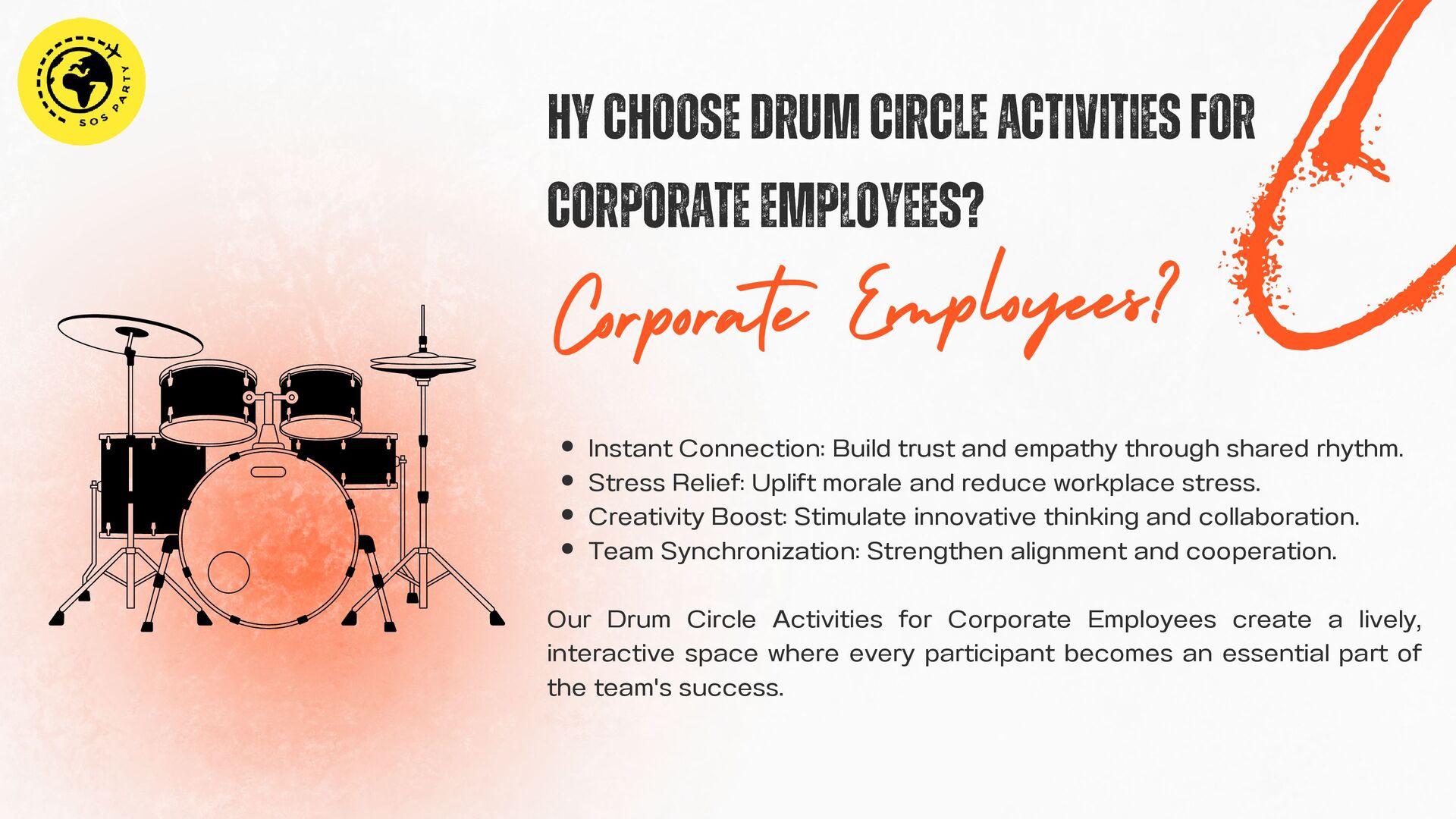 Energize your team with the vibrant rhythm of our Drum Circle activity — a powerful and engaging team-building experience like no other! Designed to spark creativity, unity, and collaboration, this activity brings participants together in a high-energy drumming session led by professional facilitators. No musical experience needed — just a willingness to connect, play, and have fun! Ideal for corporate events, offsites, and celebrations, our drum circle creates a positive vibe, reduces stress, and boosts team morale. Let the beats build synergy and harmony among your team. Feel the pulse, feel the power — join the rhythm of success!