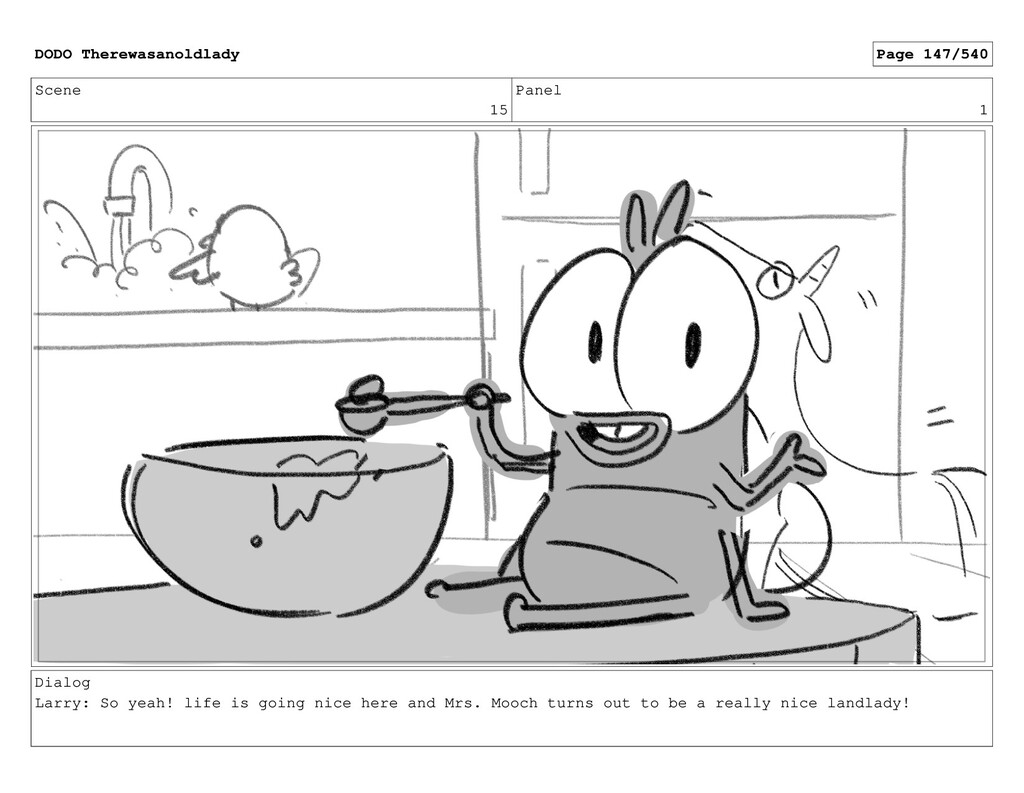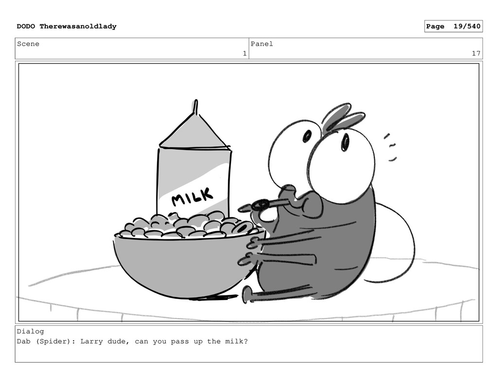 Scene 1 Panel 3 Action Notes Milk pouring in DODO