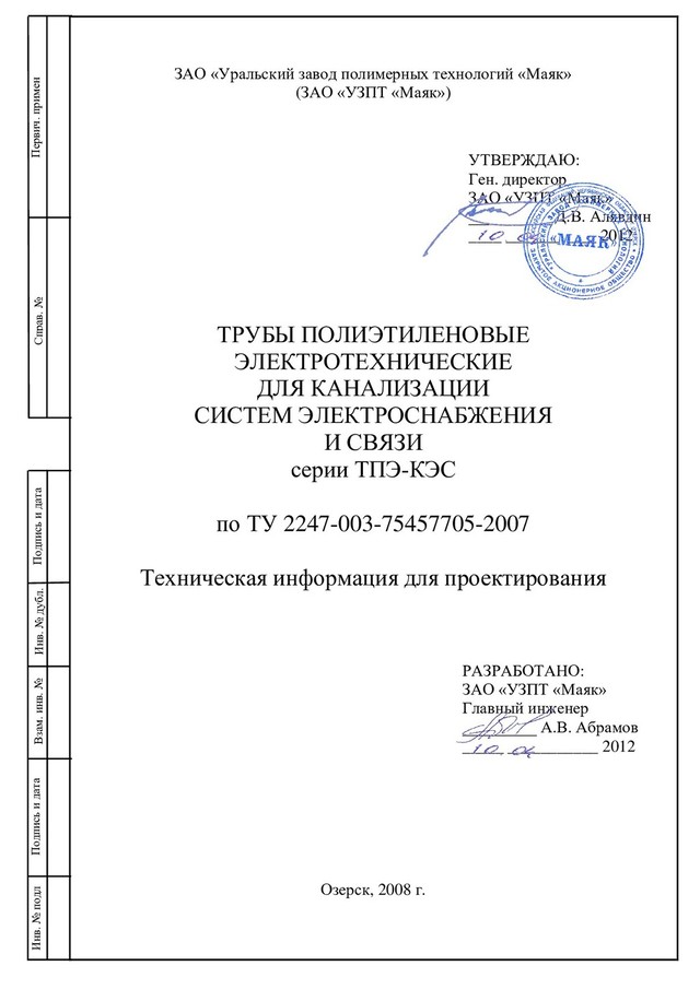 и дата Первич. примен Справ. № Изм Лист № документа Подпись Дата лист 5 ТПЭ-КЭС. Техническая информация для проектирования Инв. № дубл. Таблица 2 – Размеры масса 1 м ТПЭ-КЭС из ПНД по ГОСТ 16388-85 Средний наружный диаметр, мм Толщина стенки, мм Внутренний диаметр, Наим-е трубы номинальное значение предельное отклонение (+) номинальное значение предельное отклонение (+) номинальное значение (справочное), мм Масса, кг ТПЭ-КЭС 16 0,3 2,0 0,4 12 0,092 ТПЭ-КЭС 20 0,3 2,0 0,4 16 0,118 ТПЭ-КЭС 25 0,3 2,0 0,4 21 0,151 ТПЭ-КЭС 32 0,3 2,0 0,4 28 0,197 ТПЭ-КЭС 40 0,4 2,0 0,4 36 0,249 ТПЭ-КЭС 50 0,5 2,0 0,4 46 0,315 ТПЭ-КЭС 63 0,6 2,0/2,5* 0,4/0,5* 59/58 0,401/0,497 ТПЭ-КЭС 75 0,7 2,2/2,9 0,4/0,5 70,6/69,2 0,480/0,678 ТПЭ-КЭС 90 0,9 2,2/3,5 0,5/0,6 85,6/83 0,643/0,982 ТПЭ-КЭС 110 1,0 2,7 0,5 104,6 0,946 ТПЭ-КЭС 110 1,0 4,3 0,5 101,4 1,470 Таблица 3 – Размеры и масса 1 м ТПЭ-КЭС из ПВД по ГОСТ 16337-77 Средний наружный диаметр, мм Толщина стенки, мм Внутренний диаметр, Наимен-е трубы номинальное значение предельное отклонение (+) номинальное значение предельное отклонение (+) номинальное значение (справочное), мм Масса, кг ТПЭ-КЭС 16 0,3 2,0 0,4 12 0,89 ТПЭ-КЭС 20 0,3 2,2 0,4 15,6 0,125 ТПЭ-КЭС 25 0,3 2,0 0,4 21,0 0,146 ТПЭ-КЭС 32 0,3 2,0 0,4 28,0 0,190 ТПЭ-КЭС 40 0,4 2,0 0,4 36,0 0,241 ТПЭ-КЭС 50 0,5 2,4 0,5 45,2 0,364 ТПЭ-КЭС 63 0,6 3,0 0,5 57,0 0,564 ТПЭ-КЭС 75 0,7 3,6 0,6 67,8 0,805 ТПЭ-КЭС 90 0,9 4,3 0,7 81,4 1,150 ТПЭ-КЭС 110 1,1 5,3 0,8 99,4 1,730 ТПЭ-КЭС 110 1,1 8,1 1,1 93,8 2,540
