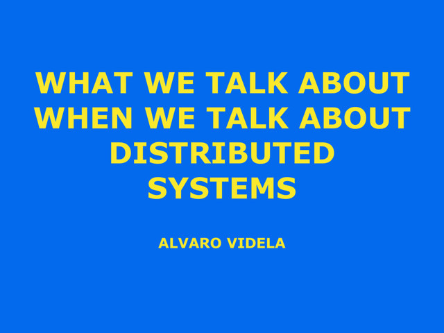Talk objectives: When learning about Distributed Systems there are lot of books and papers to chose from, with many of them having titles that are hard to understand. It’s difficult then to judge their relevance to our interests if we don’t know the topic already. The goal of the talk is to lay a common ground for Distributed Systems so everyone can benefit from the current research on the topic.