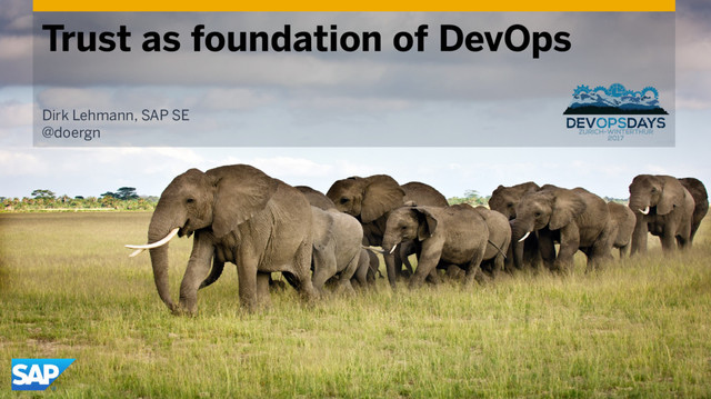 The how: I’ll first show the problem of missing trust in an (siloed) organization. Then I aim to give a definition of trust in general and which basic elements make up trust among people. I will outline which role trust plays in creating a DevOps culture, based on my very own experience within my team at SAP, as well as many examples provided by literature, blogs, etc. (e.g. “The 5 dysfunctions of a Team” - Lencioni ; “The speed of trust” - Covery). Last I will give ideas and shared experiences on how trust can be created and fostered within teams. (e.g. tell about the importance of team sizes (“The mytical man-month” (Brooks) as well as findings by Mr. Robin Dunbar “Dunbars number”), “Perception of competance”, “Perception of intensions”, “Capacity of trusting”, the importance of failure tolerance, openness, common shared goals, respect, diversity, …)