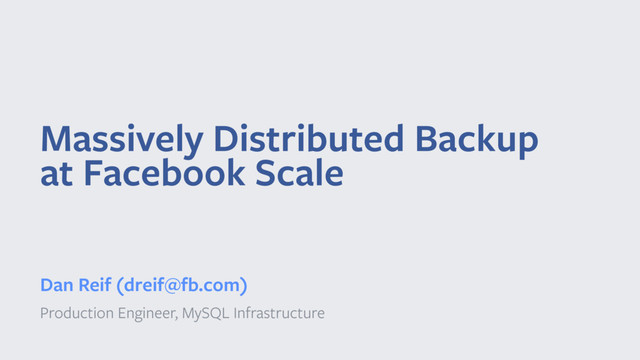 In this talk you’ll learn how we backup Facebook, every single day. We’ll go over the design, engineering and operational challenges we’ve had to overcome, and wrap up with some fun war stories.