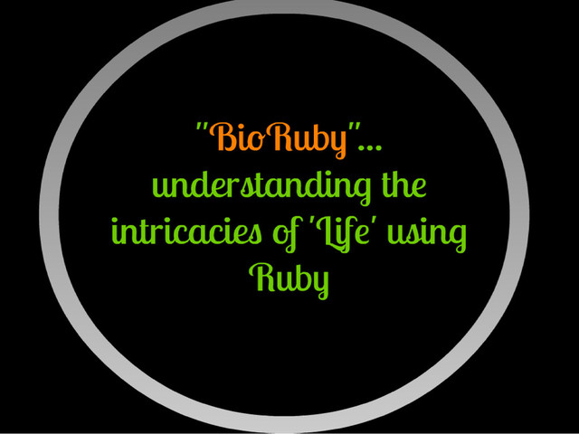 Presented in RubyConf Miami, 2013 the topic on how BioRuby eases the life of Bioinformaticians and what the it is?