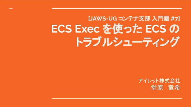 [JAWS-UG コンテナ支部 入門編 #7] ECS Exec を使った ECS の トラブルシューティング