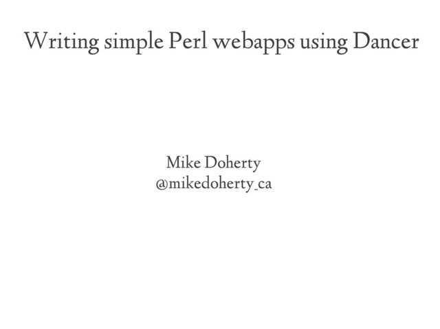 This talk provides a walkthrough of developing a simple web application with the Perl webapp framework Dancer. I gave this talk at the Dalhousie Faculty of Computer Science FreeSchool in March 2013