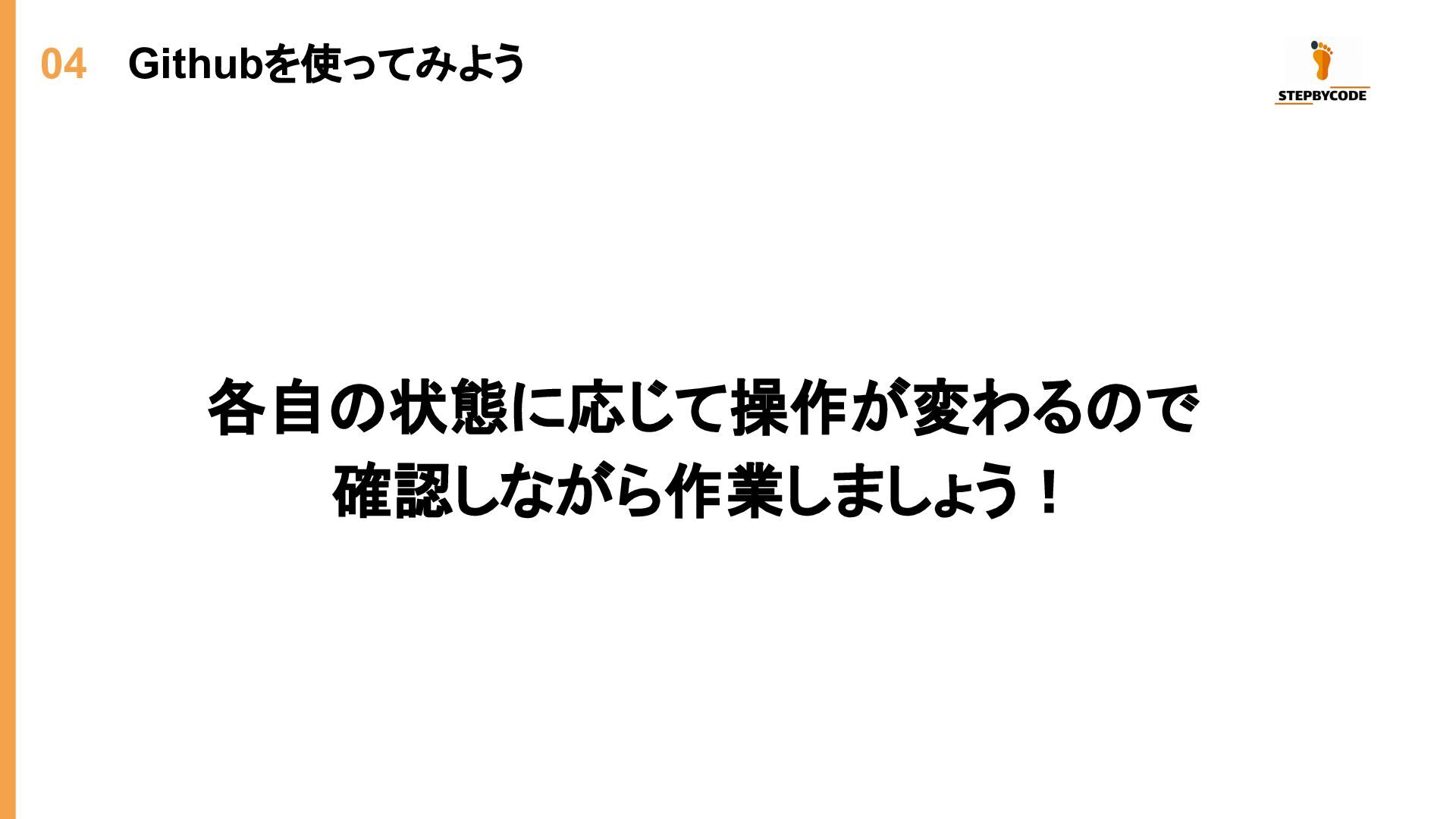04 Githubを使ってみよう 各自の状態に応じて操作が変わるので 確認しながら作業しましょう!