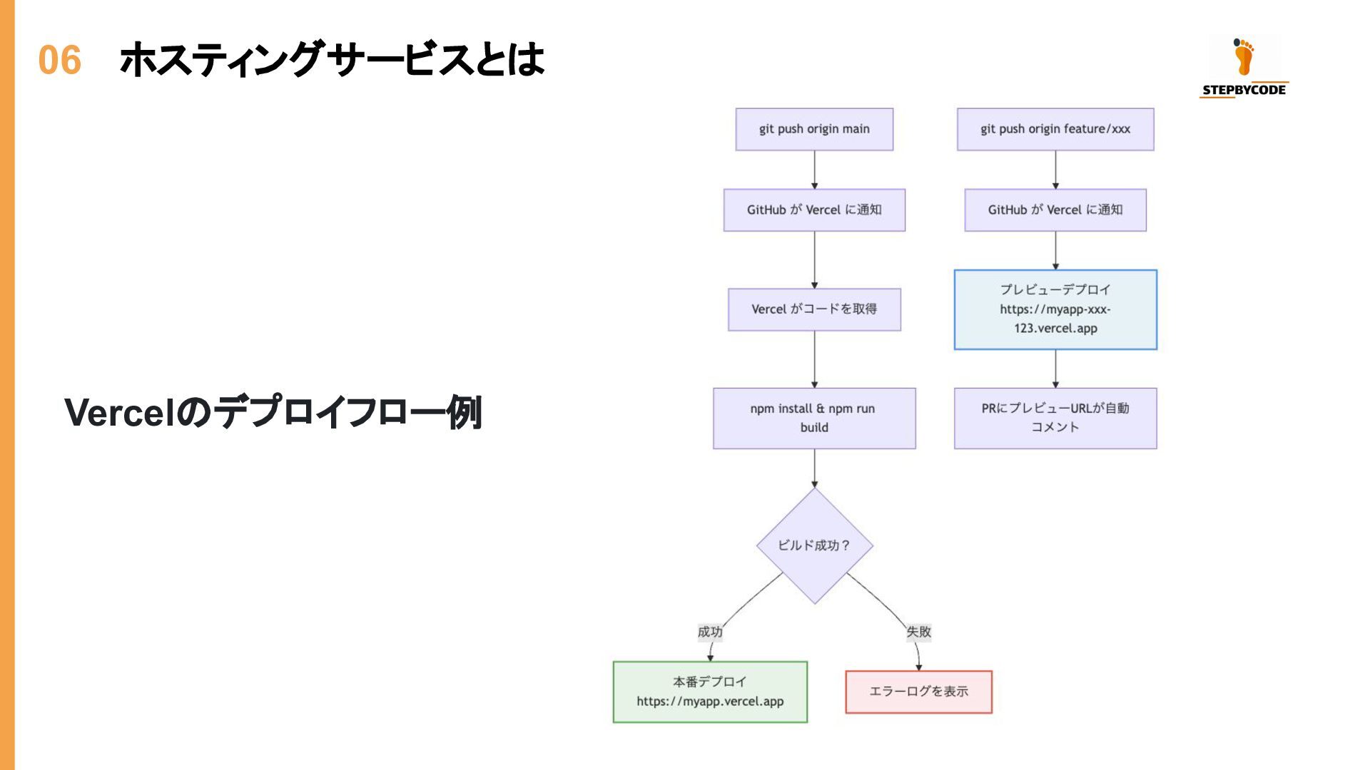 06 ホスティングサービスとは Vercelのデプロイフロー例