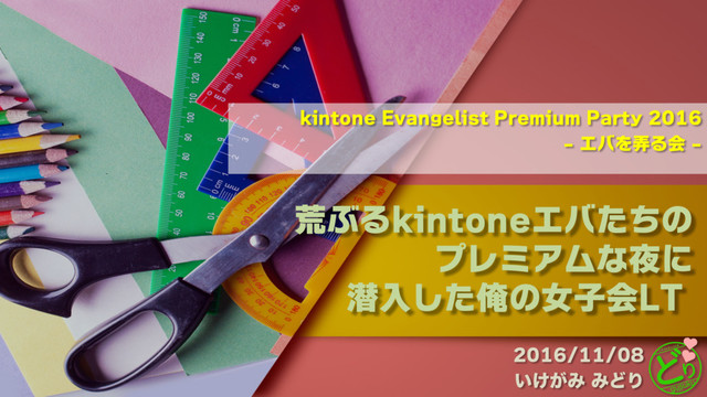 l LJOUPOF$BGÉ沖縄女子会 立ち上げフォロー l +"846(関西女子会 運営コア l 7.6(関西部会メンバー(最近出席率がry l インフラ系勉強会出たり l メンターやったり l ハッカソンとかアイデアソンとか諸々 https://www.r3it.com/community/ 池上 緑(いけがみ みどり) アールスリーインスティテュート クラウド(コスプレ)エンジニア gusukuエバンジェリスト 業務に関すること p一応会社ではエンジニア属性 p心はわりと低レイヤー。今でも低レイヤー pkintone環境に対してStressTestしてみようと おもう程度には低レイヤー p実態は謎 p最近はマーケ活動も少々 p展示会ではコスプレエンジニア l 普段の姿もOLコスプレ