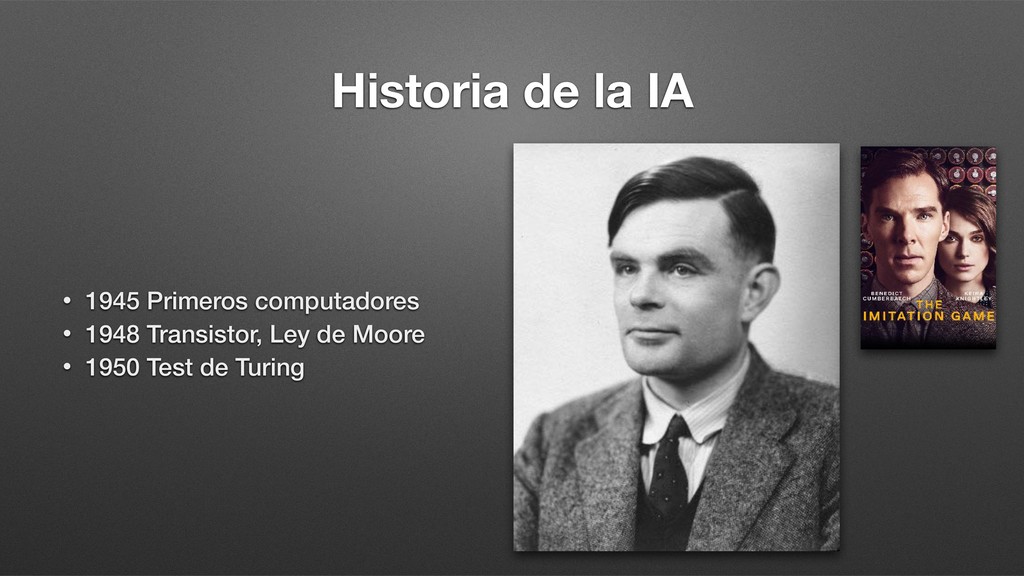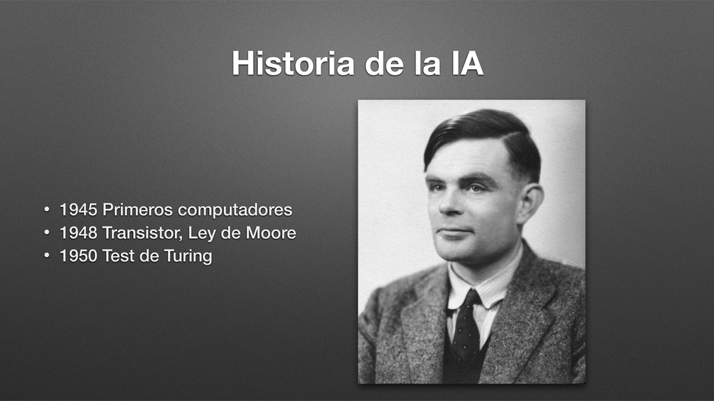 Transistor, Ley de Moore • 1950 Test de Turing • 1956 Arthur Samuel: Damas • 1957 Redes Neuronales Artificiales • 1963 IBM: Reconocimiento del habla • 1974 WABOT 1: Primer robot humanoide