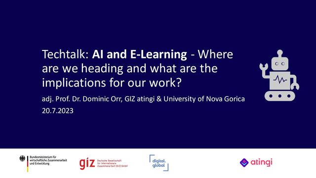 Short talk on AI and e-learning, with a further focus on the considerations for using AI in international development work, and specificially for the German development cooperation.